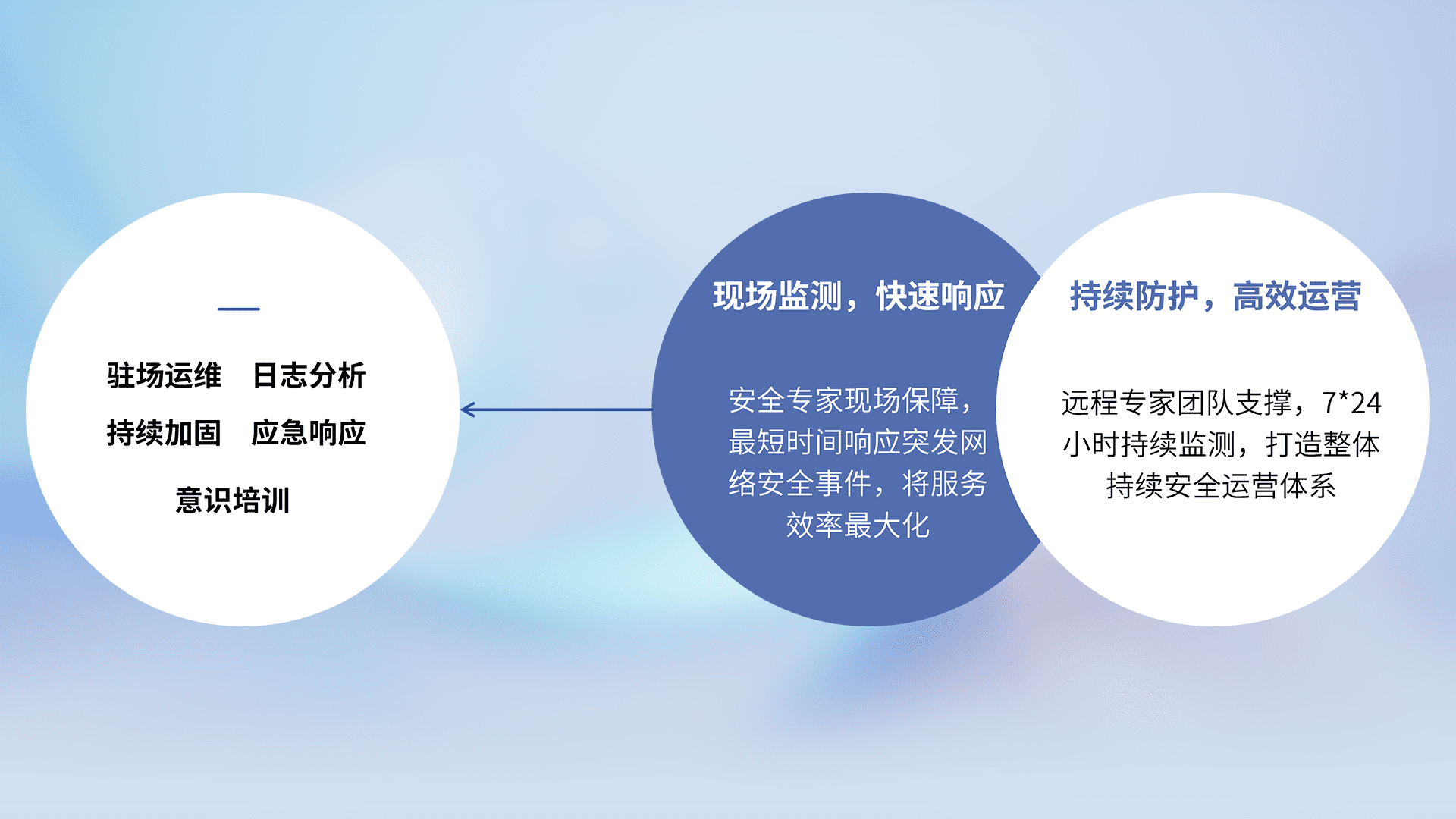 7X24小时持续监测安全事件,保持安全策略有效性,降低资产脆弱性风险,,,精准拦截黑客攻击,,,减少被黑客利用的机会,,,第一时间遏制,,,降低损失。。。